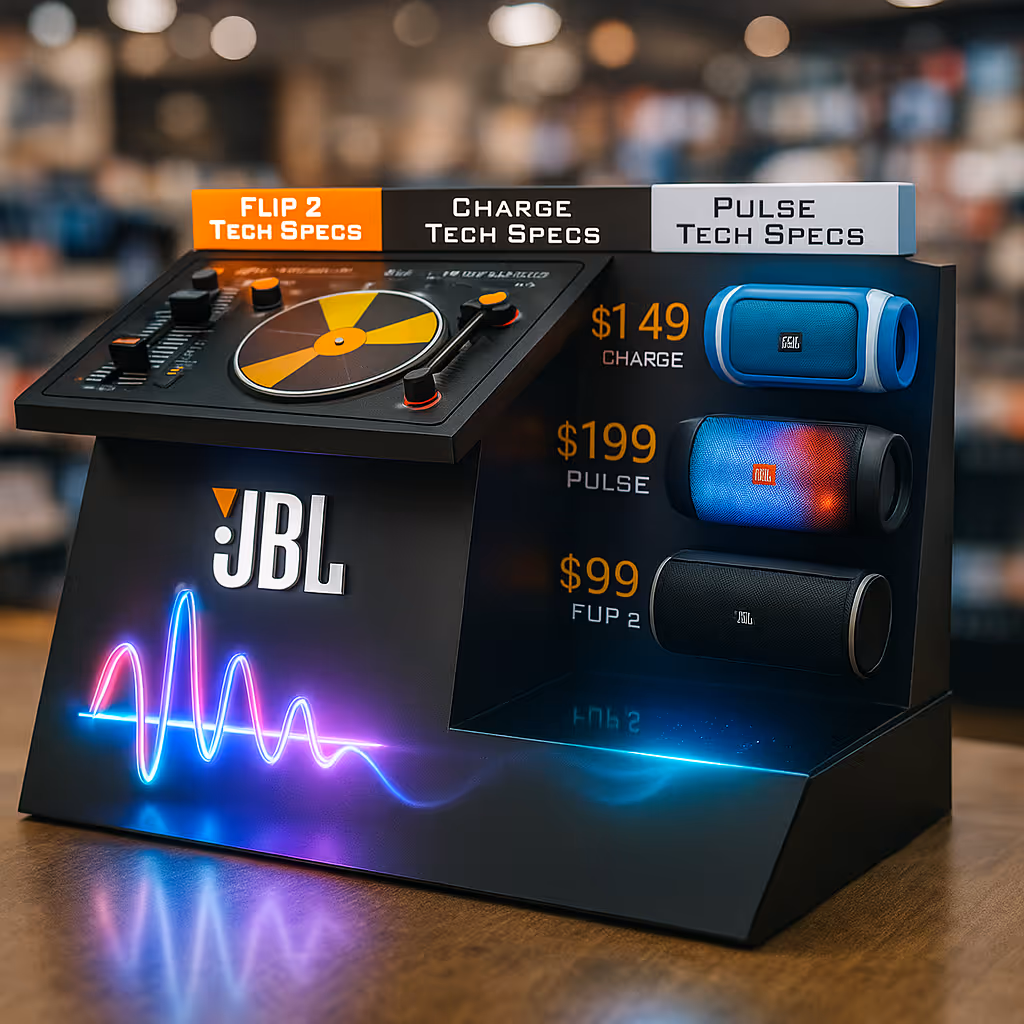 I developed a modular point-of-sale system for their Bluetooth speaker line (Flip, Charge, Pulse), with small, medium, and large formats designed to ship globally and flex across store types.